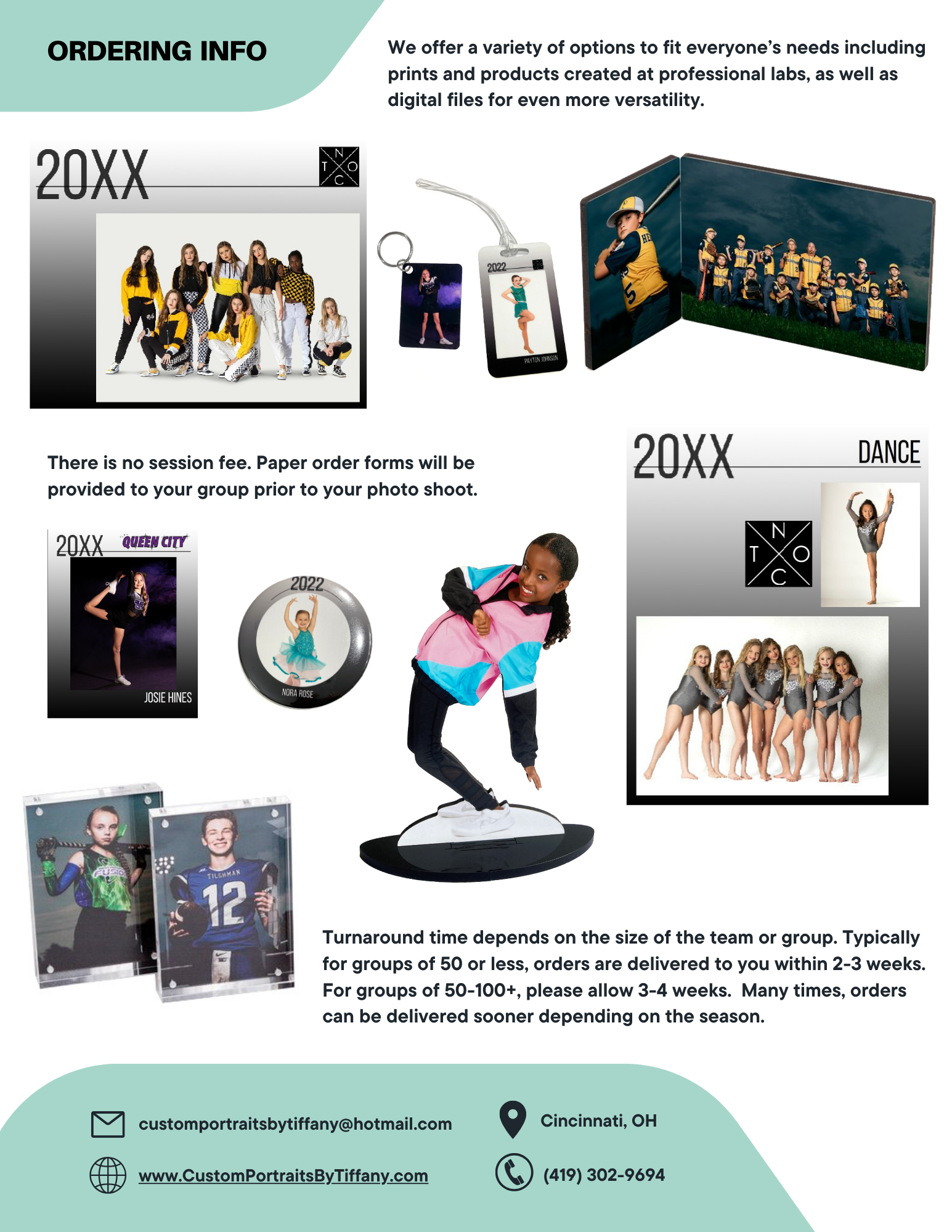 Our Athletic Portrait Guide has all the information on what to expect during your team portrait experience! Find out what makes Custom Portraits By Tiffany creative, modern, and unique!